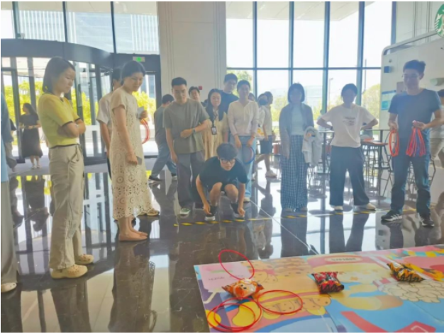 本次活动特别设计了三项互动挑战:趣味套圈、筷子夹零食、零食传递赛——不仅考验参与者的专注力与协作力,更唤起了大家儿时的游戏记忆。在轻松愉悦的氛围中,同事们从“点头之交”到“并肩作战”,互动中收获了笑声,也拉近了彼此的距离。